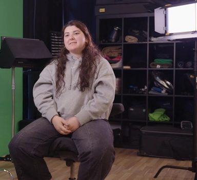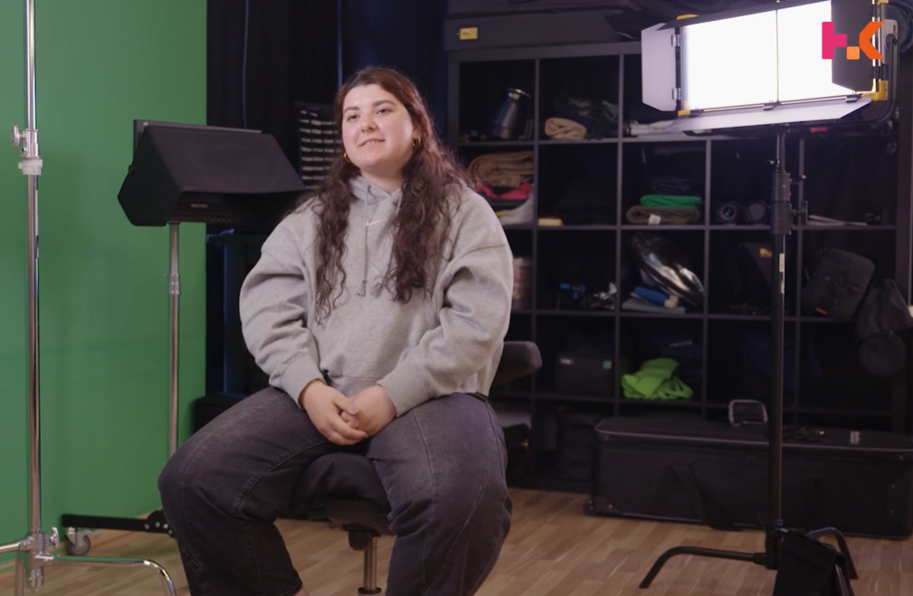 Bli kjent med Larysa som lærer norsk tegnspråk samtidig som hun har praksis i et filmproduksjonsselskap.