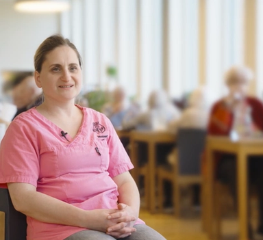 Oleksandr lærte norsk tegnspråk fort og bruker det hver dag på jobb som miljøarbeider. Bli med Oleksandr på jobb!